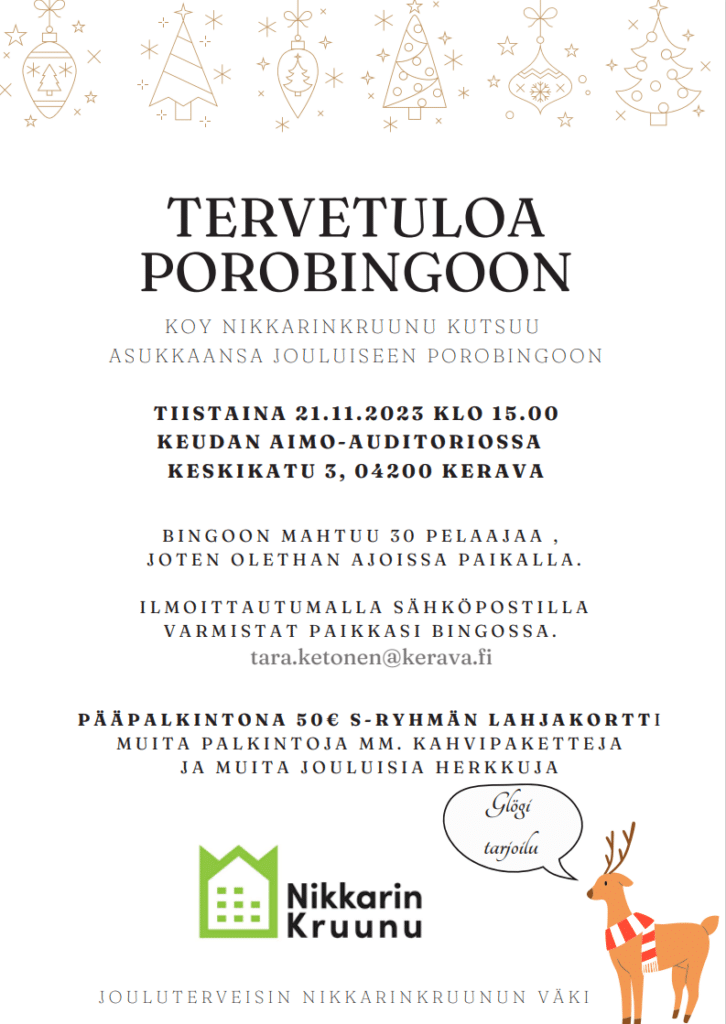 Tervetuloa porobingoon 21.11.2023 klo 15